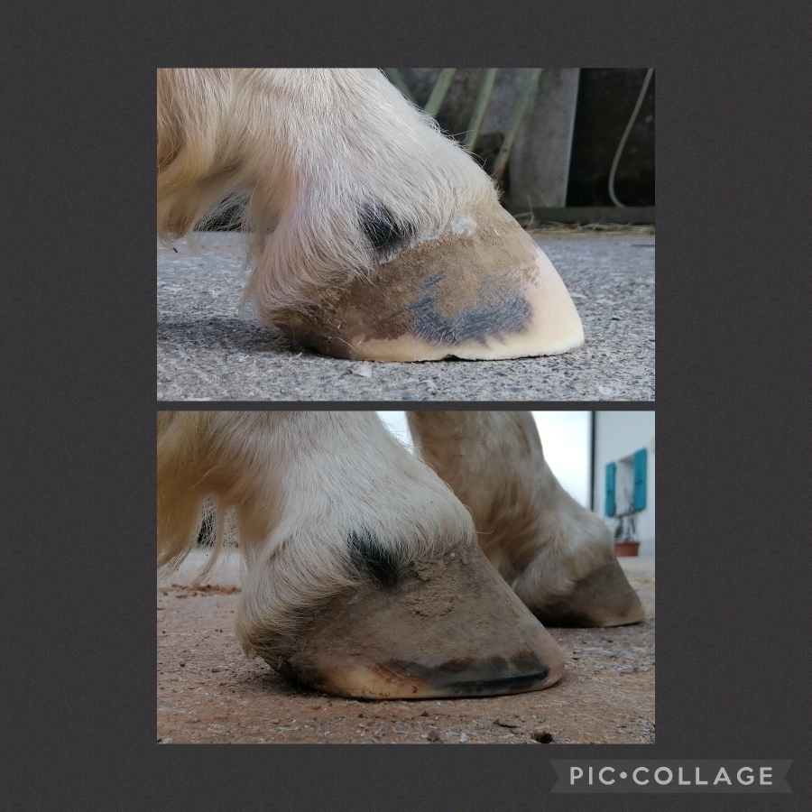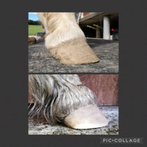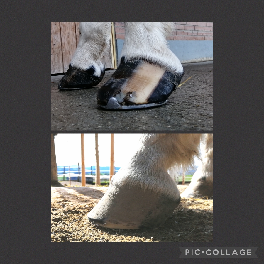 Selenvergiftung und ein gescheiterter Hilfsversuch mit Hornaufbau und Bekleb. Nun unterstützen wir den Pferdemann von der Basis her. Haltung, Fütterung und Hufpflege. Die tolle Entwicklung in kürzester Zeit, zeigt dass unser Konzept greift.