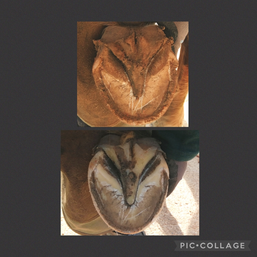 Sohlengewölbe wächst und muss nicht geschnitten werden. 3 Monate im Prozess und der Huf arbeitet, wenn wir ihn lassen.