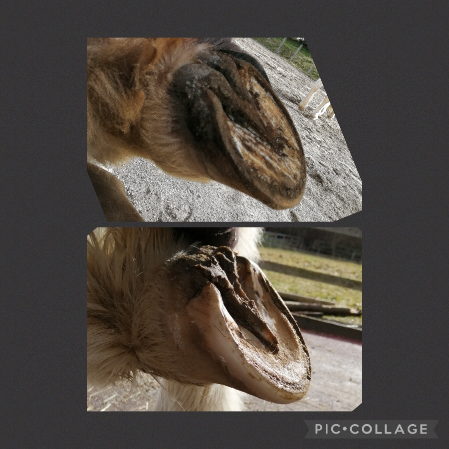Hufe sind flexibel, mit einem starren Eisenbeschlag, können sie sich nicht optimal entwickeln. Dieser Huf war jahrelang Beschlagen, die Schäden sind bereits von Aussen zu sehen, aber auch im Innern sind Schäden vorhanden. Heute gibt es tolle Alternativbeschläge zu Eisen, falls das Barhuflaufen aus irgendwelchen Gründen nicht möglich sein sollte, lohnt es sich, diese Kennenzulernen. Diese ältere Dame darf nun Barhuf unterwegs sein und ihren Lebensabend geniessen.
